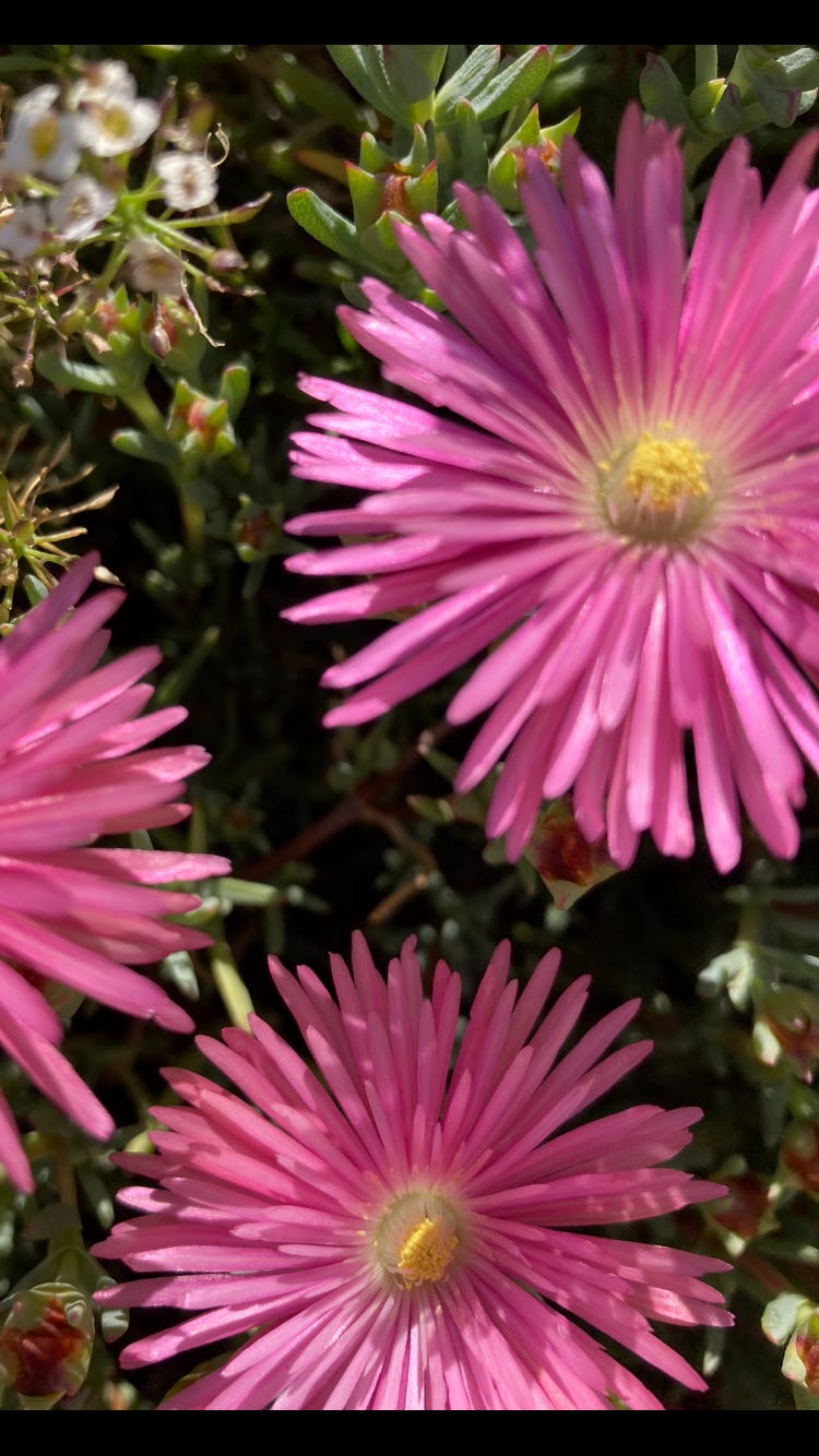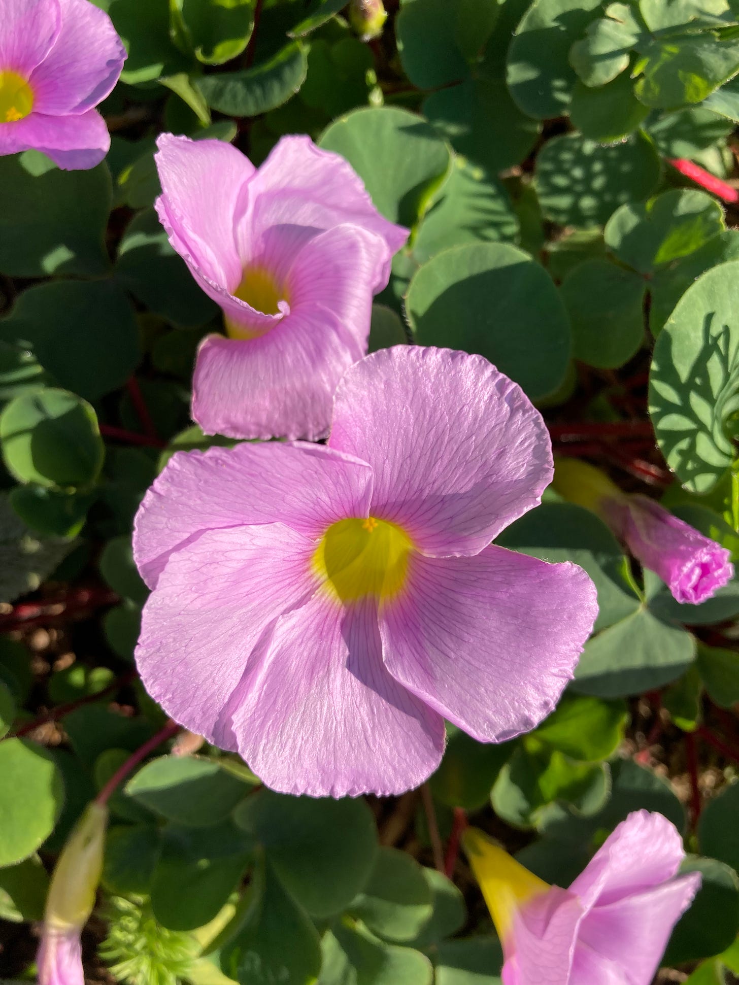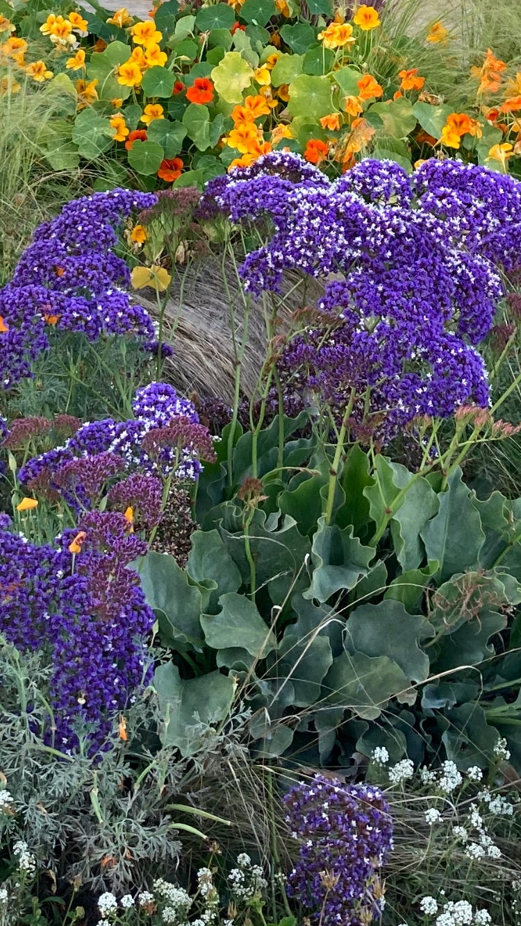 footnote: photographs are of violet hybrid oxalis, pink ice plant (delosperma), California white sage (salvia apiana ), and purple sea lavender (limonium perezii, also statice) & nasturtium patch.