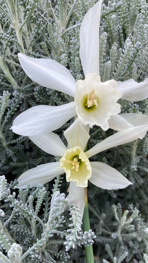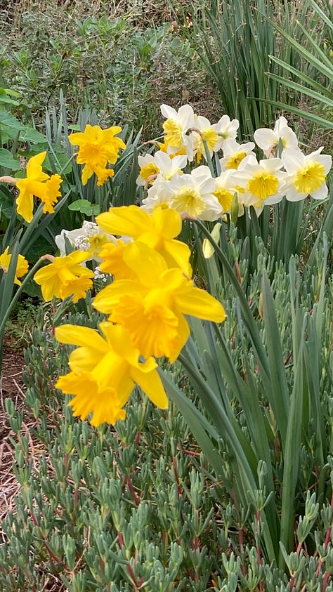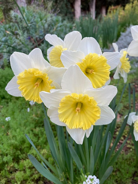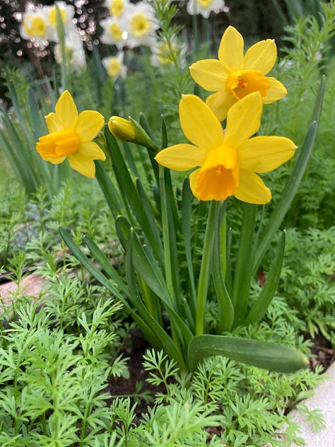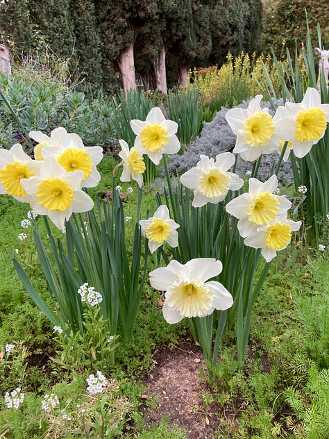 Daffodils are really easy to grow as long as the soil doesn’t completely dry out in the summer. Mysterious creatures of the underworld, bulbs are cyclical clocks emerging as a fleeting celebration of Spring then disappearing back into earthly hibernation, renewal and replication, naturalizing in clumps that grow, expand year after year after year.
